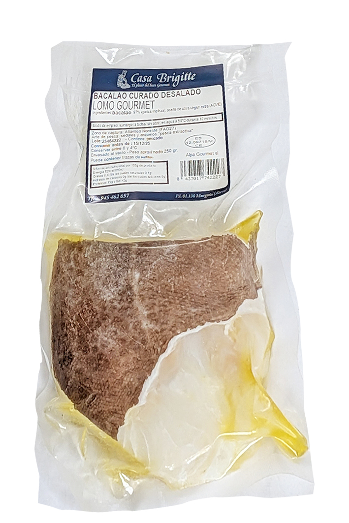 Se trata de un producto pesquero transformado procedente de bacalao (Gadus Morhua), cortado y clasificado y que ha sufrido un proceso de desalado hasta conseguir un porcentaje de salinidad inferior al 3%, envasado en atmósfera modificada o al vacío con aceite y conservado en refrigeración.