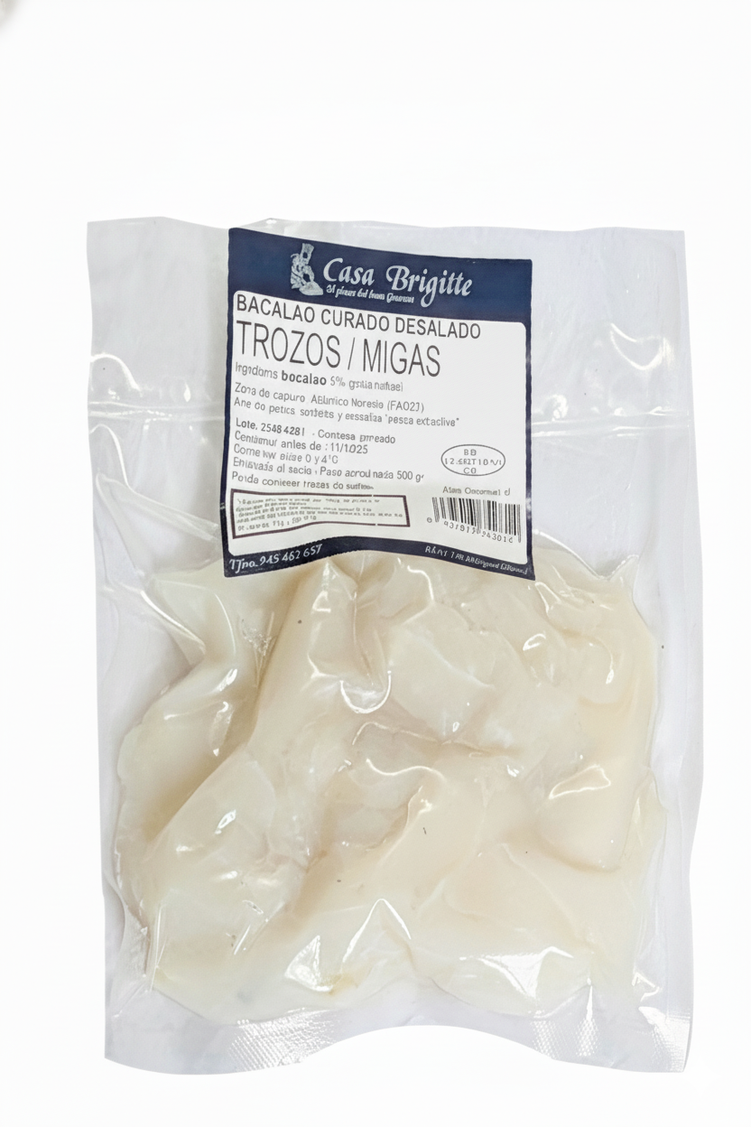 Recortes de nuestro bacalao, sin menospreciar su calidad, ya que proviene del mismo filete que los demás bacalaos. Ideal para Pinchos , como relleno de croquetas o pimientos, rebozados,…